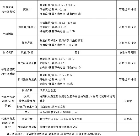 規(guī)定了制藥、醫(yī)療、電子、科學(xué)實驗室等不同應(yīng)用領(lǐng)域的檢測要求,如下: